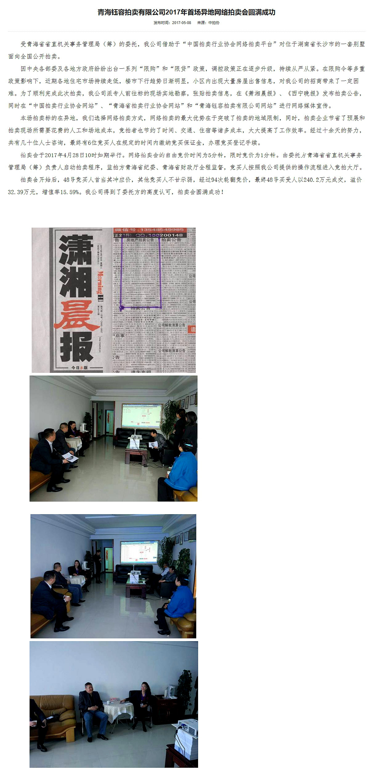 青海钰容拍卖有限公司2017年首场异地网络拍卖会圆满成功