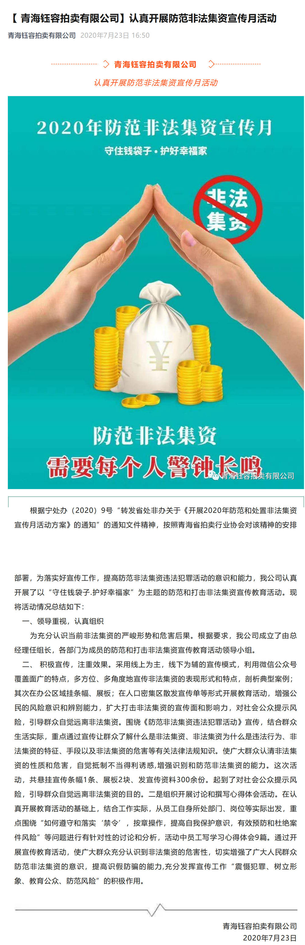 2020年7月23日【 青海钰容拍卖有限公司】认真开展防范非法集资宣传月活动_00