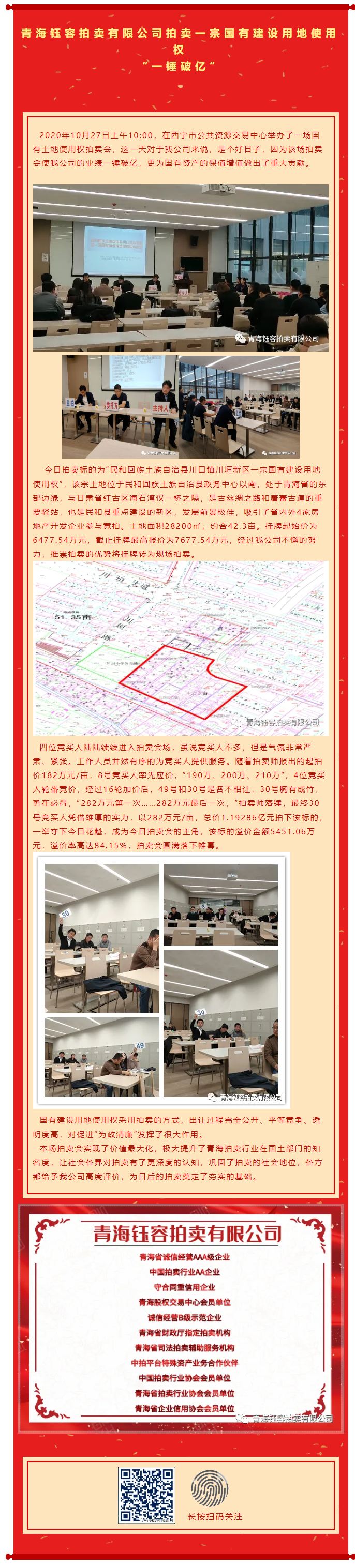 【2020年10月27日青海钰容拍卖有限公司】拍卖一宗国有建设用地使用权 “一锤破亿”