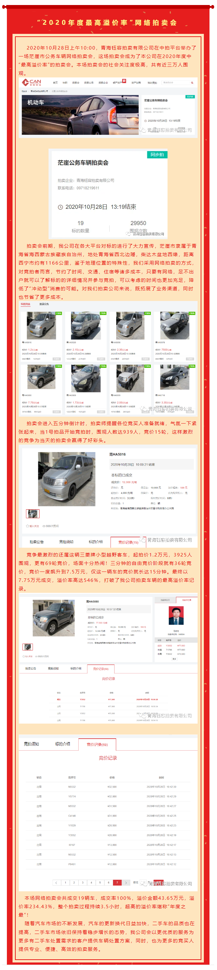 2020年10月28日“2020年度最高溢价率”网络拍卖会