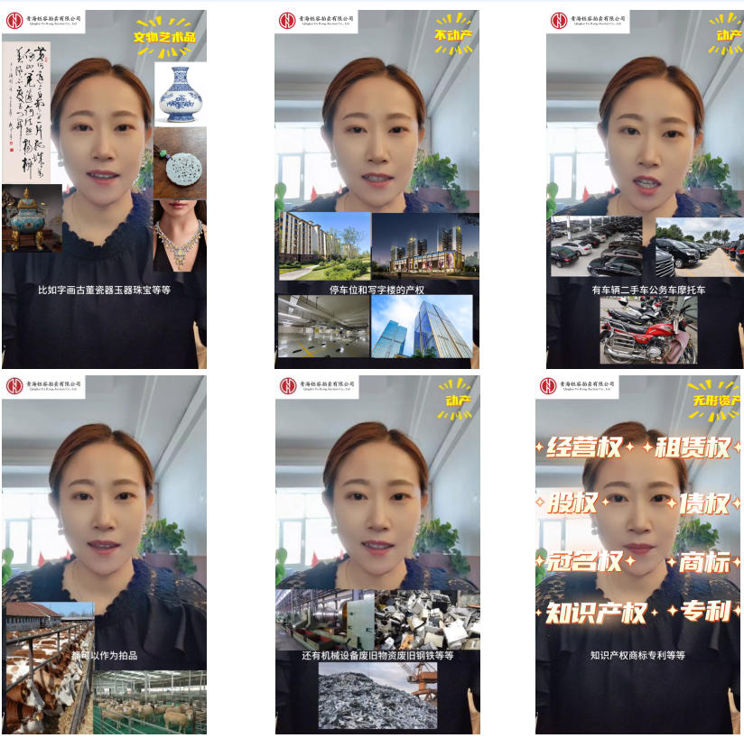 另外还有些特殊的拍卖物品,比如鲜花、果蔬、水产品等鲜活商品,贵金属、首饰、奢侈品等贵重商品,还有我们高原地区比较有特色的活体牛羊,都可以作为拍品。